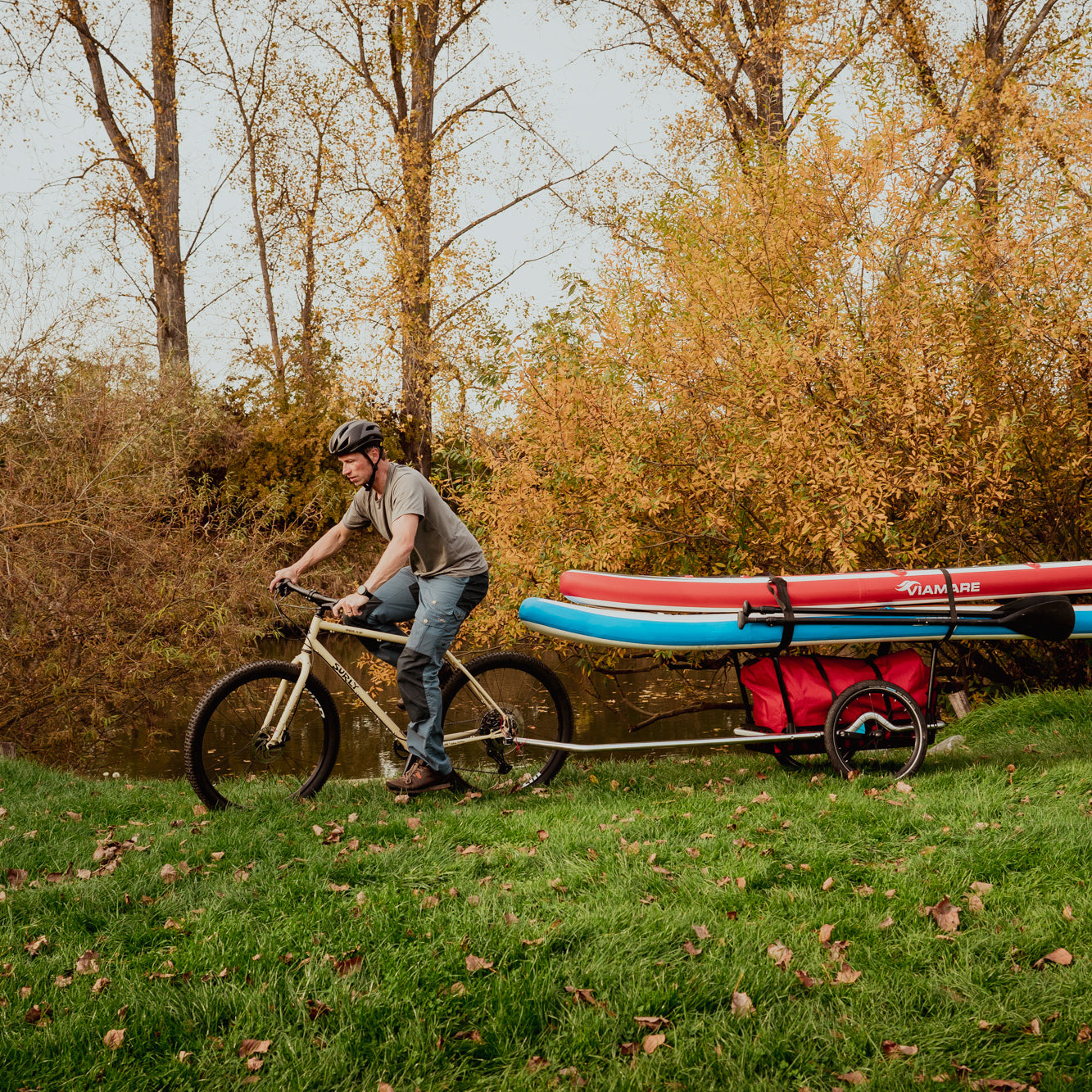 Der VEOLO lässt sich mit wenigen Handgriffen in ein vielseitiges Multitool umwandeln. So begleitet er dich bei Radreisen, Ausflügen, mit Hund, bei Wassersport-Transporten oder als Handwagen beim Einkauf. Ein System – viele Einsatzmöglichkeiten.