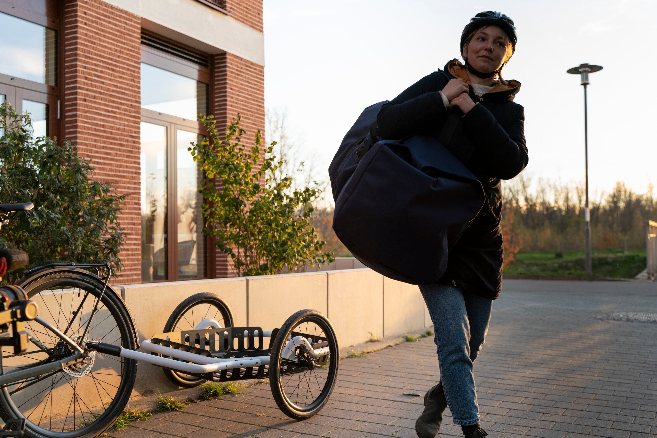 With the bicycle transport trailer you always have enough space for all the things that will enrich your adventures. Whether you're going on a bike ride in the countryside with a picnic or doing your weekend shopping with a quick trip to the hardware store: the VEOLO has enough storage space for everything you need and ensures that you never miss out on the fun. And the best thing about it: no one plays the pack mule , because the VEOLO runs reliably and easily behind the bike.