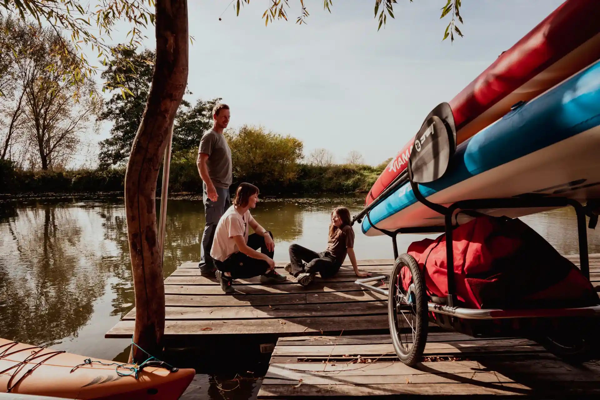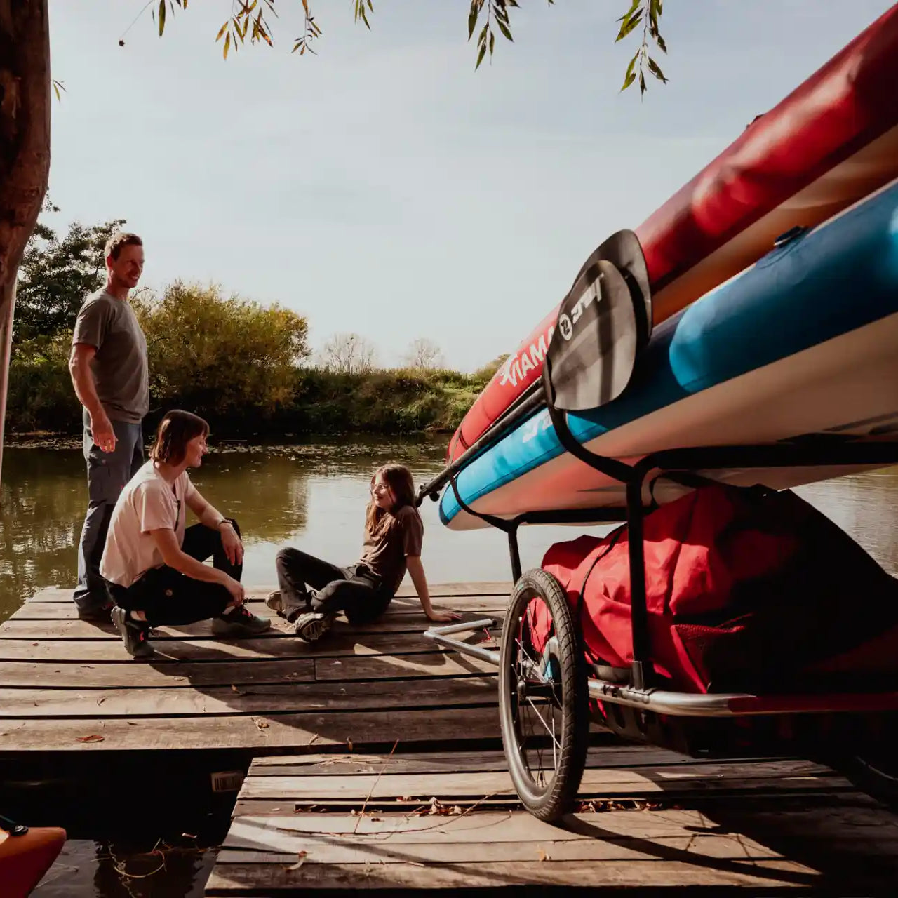 Get off the bike and into the water: simply load your water sports equipment onto the SUP and kayak trailer and throw yourself into the adventure – whether dry or wet!