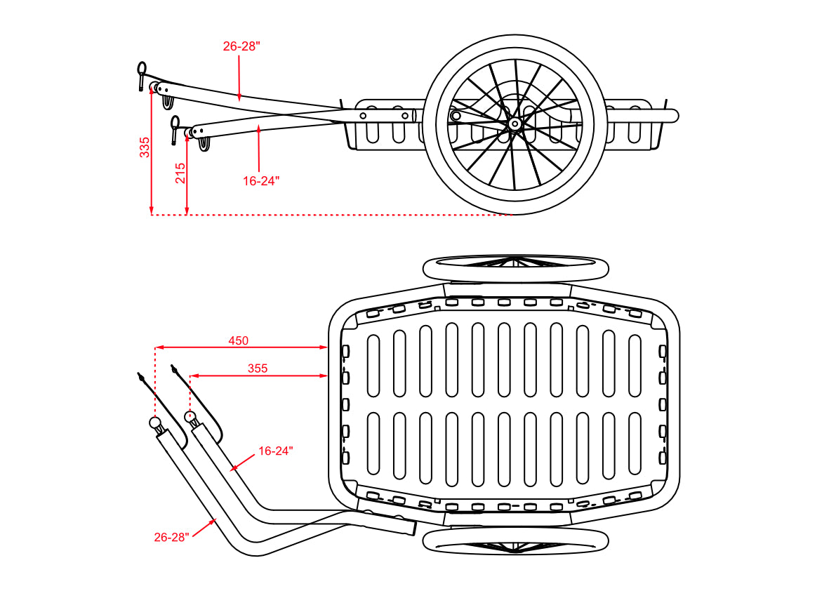 Als Alternative zu unserer Standard-Deichsel bieten wir für 26- bis 28-Zoll-Räder eine schwenkbare Deichsel an. Diese lässt sich nach oben klappen, sodass der Anhänger am verstellbaren Griff bequem als Handwagen genutzt werden kann.